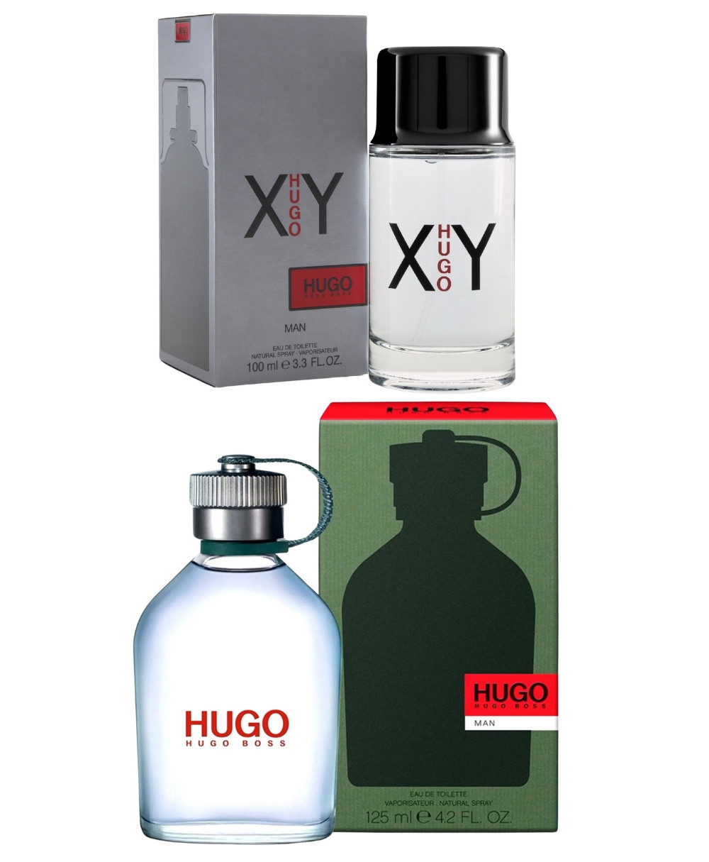 1) Hugo Boss Green 125ml Eau de Toilette Caballero es una fragancia de la familia olfativa Aromática Verde para Hombres. Las Notas de Salida son manzana verde, lavanda, menta, toronja (pomelo) y albahaca; las Notas de Corazón son salvia, geranio, clavel y jazmín; las Notas de Fondo son abeto, cedro y pachulí. 2) Hugo Boss XY 100ml Eau de Toilette Caballero es una fragancia de la familia olfativa Amaderada Aromática para Hombres. Las Notas de Salida son cedro, hojas del peral y bergamota; las Notas de Corazón son menta y albahaca; las Notas de Fondo son cedro, almizcle y pachulí.