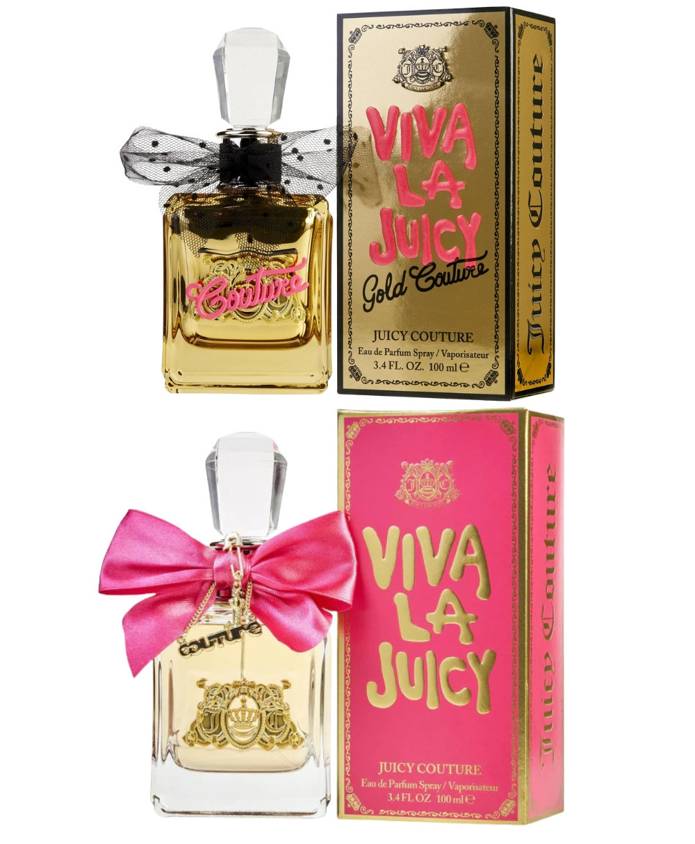 2) Juicy Couture Viva la Juicy Gold 100ml Eau de Parfum Dama es una fragancia de la familia olfativa Floral Frutal Gourmand para Mujeres. Las Notas de Salida son bayas silvestres, gardenia y lirio de los valles (muguete); las Notas de Corazón son madreselva, jazmín sambac (sampaguita) y orquídea de vainilla; las Notas de Fondo son caramelo, vainilla, sándalo y praliné."