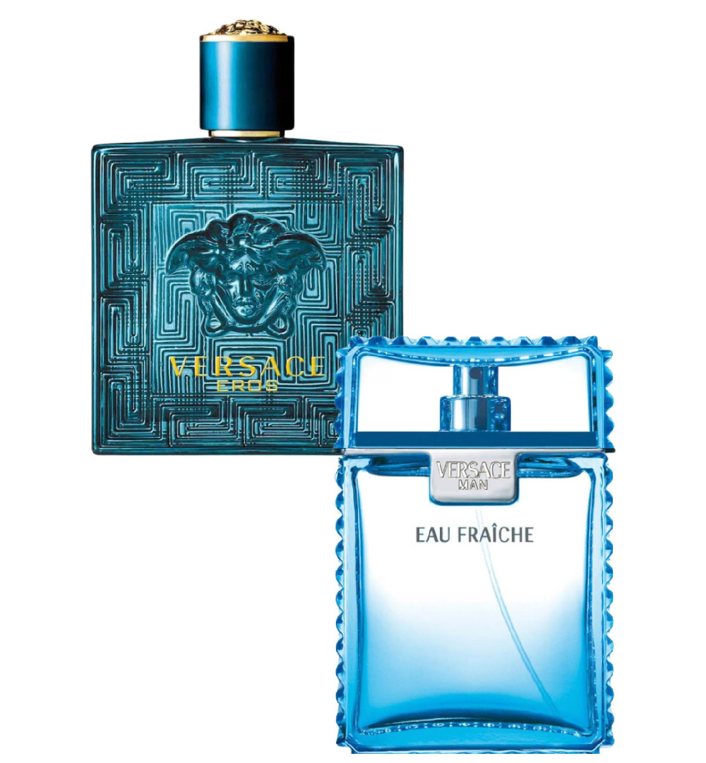 1) Versace Eros 100ml Eau de Toilette Caballero es una fragancia de la familia olfativa Aromática Fougère para Hombres. Las Notas de Salida son menta, manzana verde y limón (lima ácida); las Notas de Corazón son haba tonka, ambroxan y geranio; las Notas de Fondo son vainilla de Madagascar, cedro de Virginia, cedro del Atlas, vetiver y musgo de roble. 2) Versace Eau Fraiche 05ml Eau de Toilette Caballero es una fragancia de la familia olfativa Amaderada Acuática para Hombres. Las Notas de Salida son limón (lima ácida), bergamota, carambola, cardamomo y palo de rosa de Brasil; las Notas de Corazón son cedro, estragón, salvia y pimienta; las Notas de Fondo son almizcle, notas amaderadas, azafrán, ámbar y madera de sicómoro.